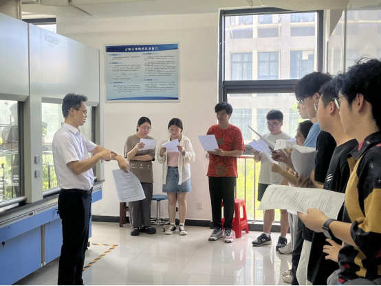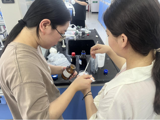 近日,太阳集团tyc5997组织学生在精细化工实验室开展“玩转科学实验,自制无添加防晒霜”劳动教育实践活动,化学工程教研室主任张林锋教授为参加活动的学生讲解防晒霜制备原料及作用原理,同学们分组设计实验配方并自制了“专属”防晒霜。