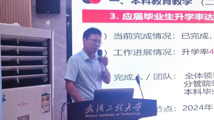 院长易群从党建与思想政治工作、本科教育教学、研究生教育教学、科学研究、师资队伍建设、对外合作办学、绩效管理、平安建设与保密工作等方面对学院2024年重点工作进行全面阶段性梳理,肯定成绩、指出不足,并围绕科研项目、科研奖励、科研平台、人才引育、团队建设、绩效考核与改革七个方面,对2025年重点工作进行了总体部署,希望全体教职工聚焦学院重点工作,提升政治意识、凝聚思想共识、精准把握关键环节、锚定发展机会、加强职责履行,全力以赴推动学院各项事业高质量发展。