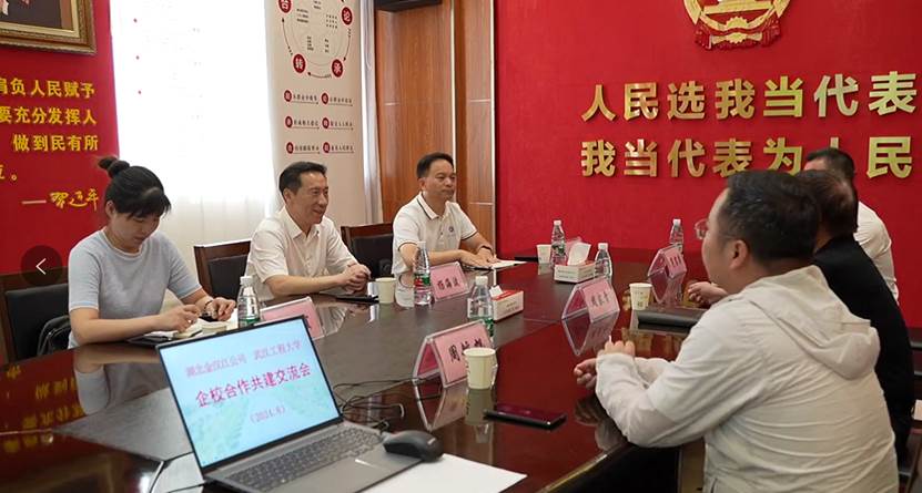 湖北钟祥市委常委、市委组织部长甘玲、湖北金汉江精制棉有限公司董事长周先贵、总经理周航旭和技术总经理范宗清对杨海波书记一行的到访表示了热烈欢迎。周航旭介绍了公司的发展历程、战略规划以及与太阳官网30多年校企合作情况,双方就化工行业国内外整体发展趋势和校企合作模式进行了深入探讨。杨海波从历史沿革、专业设置、人才培养、学生就业等方面介绍了学院的基本情况,强调学院非常重视与金汉江的合作交流,希望以本次访企拓岗活动为契机,把握双方事业发展契合点,继续深入推进科研合作,并进一步拓展高层次人才培养等方面的合作空间。