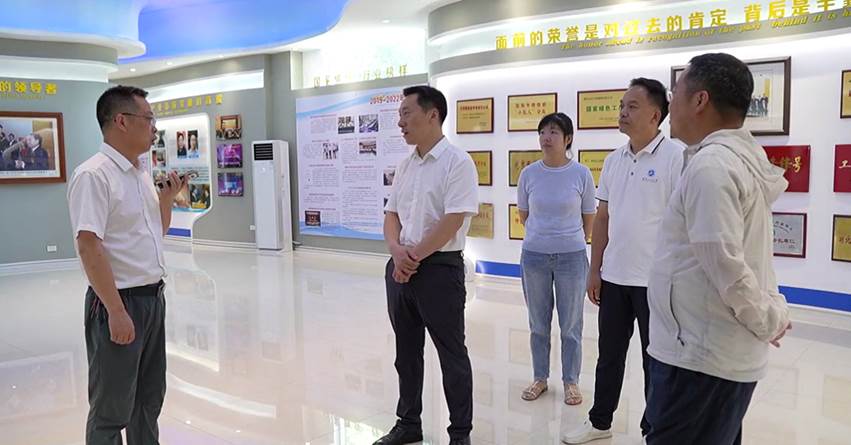 在总经理周航旭和技术总经理范宗清陪同下,杨海波书记一行前往公司经济厅、党建厅及企校共建暨技术合作厅等区域进行了参观与交流。