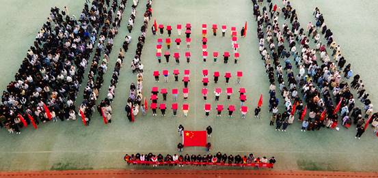 在悠扬动听的歌声中,台上台下的同学一同唱响了对祖国母亲的深切依恋与热爱。在大合唱部分,台下72名摆字方阵的同学高举红色纸板,组成了数字2025的形状,以满满的仪式感迎接崭新的一年!