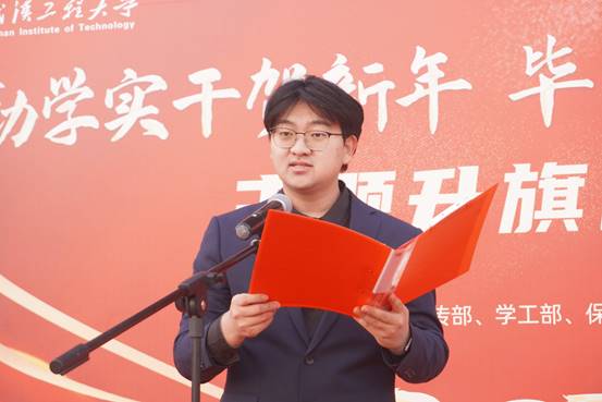 太阳集团tyc5997学生代表、全国西部计划优秀志愿者李帅辰分享了他作为学校研支团成员在湖北省通城县麦市中学支教的感人故事。他表示,在新的一年里,工大学子当以更加饱满的热情、更加坚定的决心,全身心地投入到学习和生活中去,让勤学成为工大学子青春远航的动力,让实干成为工大学子最鲜明的青春底色。