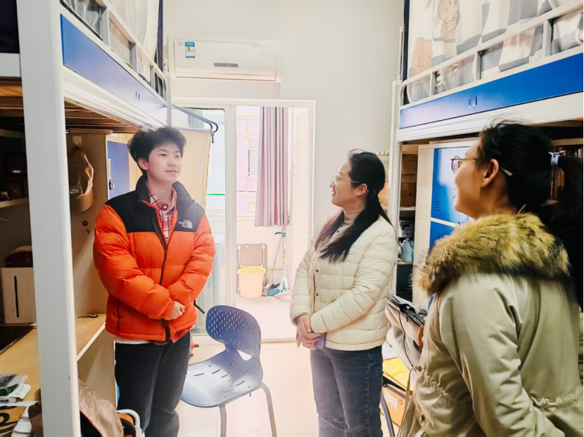 2月19日,学院领导及辅导员深入学生宿舍,慰问、看望因实习、科研任务提前返校的同学们,为学生送去新学期的关怀。叮嘱同学们要守好安全底线,注意消防、财产、交通等方面的安全。对即将要参加实习的同学,叮嘱同学们要遵守纪律,一切行动听老师指挥,要注意实习期间的安全。