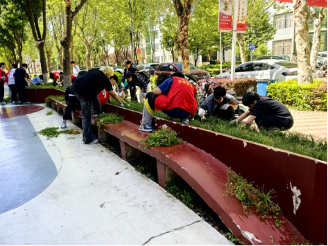 随后,同学们迅速投入到劳动中。大家分工明确,配合默契,有的弯腰仔细拔除杂草,有的将杂草集中堆放,有的清理花坛周边的杂物。尽管烈日炎炎,但同学们热情不减。后勤保障处老师穿梭其中耐心解答,劳动现场热火朝天却秩序井然。