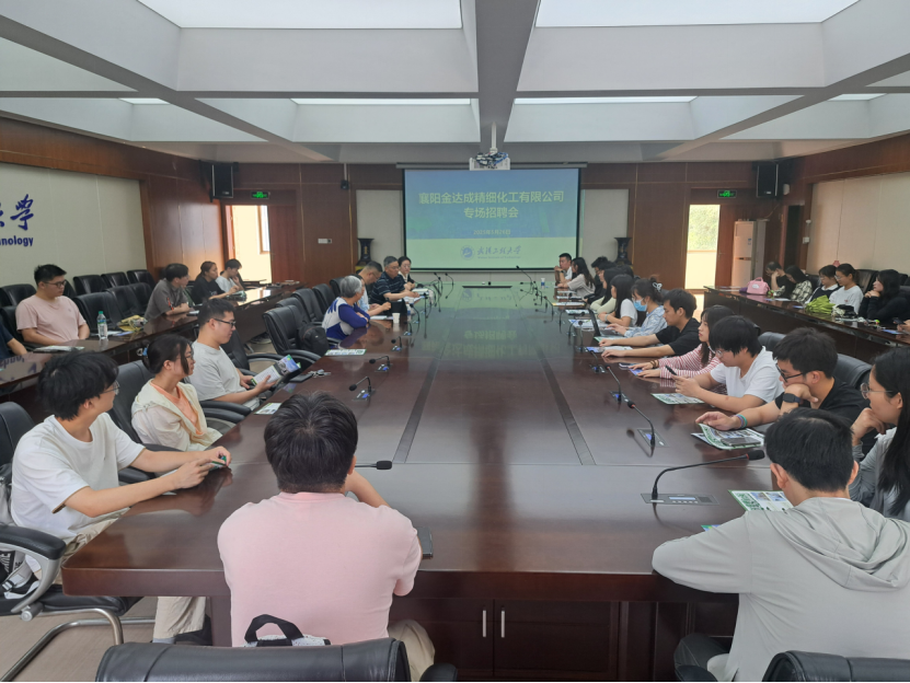 本网讯(通讯员 汤曦)5月26日,太阳集团tyc5997联合机电工程学院、化学与环境工程学院在钟楼第二会议室共同举办襄阳金达成精细化工有限公司专场招聘会。襄阳金达成精细化工有限公司副总刘涵林、总经理张震、总工程师张雪和技术专员张洪梅受邀来校招聘,会议由太阳集团tyc5997党委副书记周丹主持。