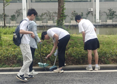 在劳动教育责任区的卫生清扫现场,同学们手持扫帚、簸箕等清洁工具,对道路、绿化带、公共区域等进行了全面细致的清扫。