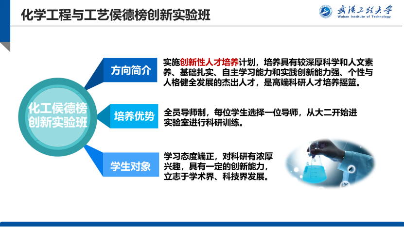 学院化学工程与工艺现为国家级一流本科专业,四次通过教育部工程认证。化工侯德榜班面向化工及相关行业发展的重大需求,以实践创新能力培养为核心,培养具有扎实的数学、物理和化学基础知识,基本的物理、化学实验技能和计算机应用能力,深厚的化学工程与工艺专业知识,有健全人格、家国情怀、社会责任、国际视野、创新精神和可持续发展理念,德智体美劳全面发展,能胜任科学研究和技术开发、工程设计、科技管理等工作的高层次、复合型、创新型专业人才。