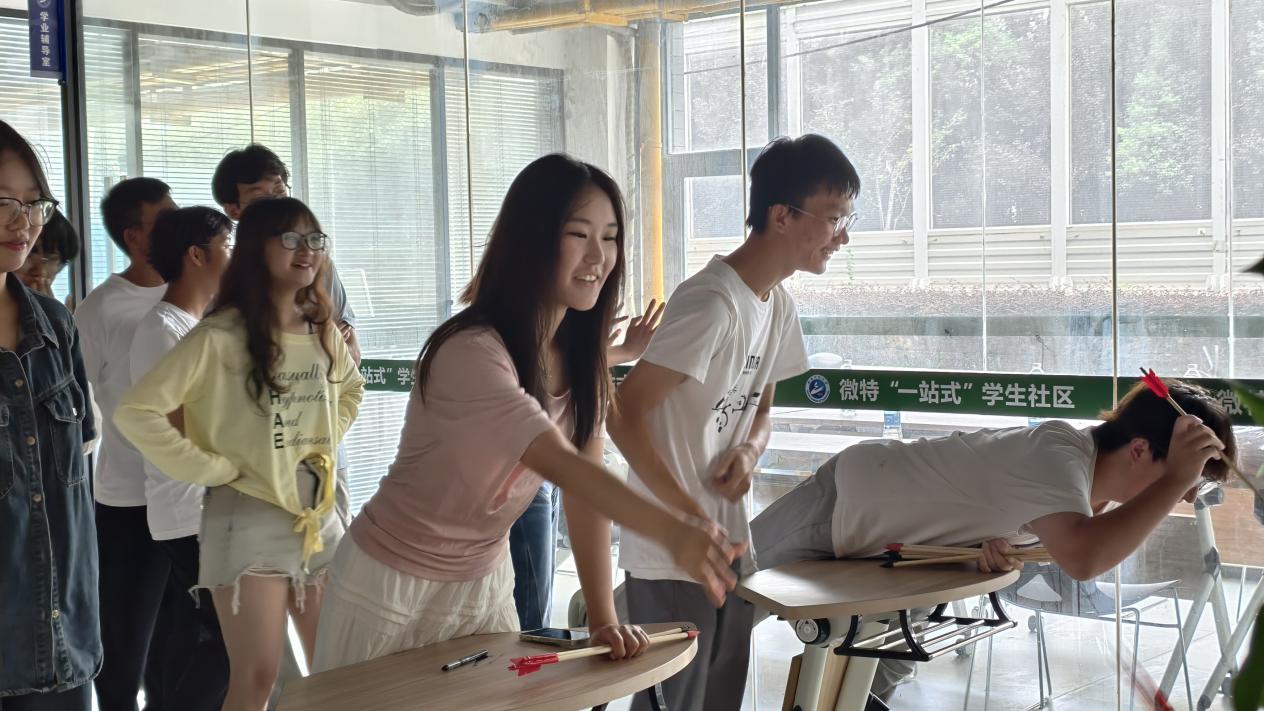 在投壶环节,活动气氛瞬间被点燃。50余名同学分成四组,每组推选代表轮番上阵。大家凝神定气、瞄准箭壶,羽箭破空而去,现场喝彩声此起彼伏。最终按照每组的投中总数排名,并为优胜队伍颁发了惊喜奖励。同学们竞技中收获了团结与快乐,为活动增添了浓浓的节日氛围。